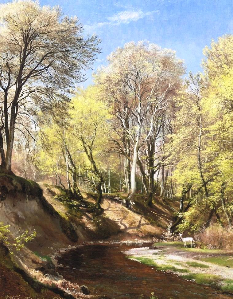 Your oil painting reproduction of "Deer at the Bend of the River" by Carl Frederic Aagaard will be handmade to replicate all the brushstroke details, colors, and shading of the original work of art. Please be assured that you will receive a magnificent oil painting.
